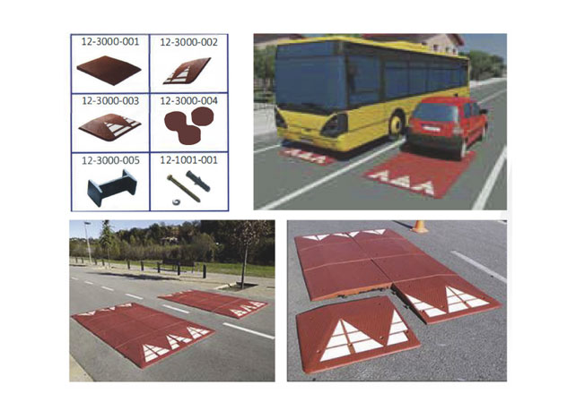 PROJEKTIRANJE, IZRADA, UGRADNJA I ODRŽAVANJEGumeni otok, pravokutnog oblika, postavlja se na mjestima (prometnice, ulice ... ) gdje je ograničenje brzine maksimalna 30 km/h i svim mjestima gdje se želi fizički ograničiti na tu brzinu. Postava jednostavna putem vijaka i tipli.