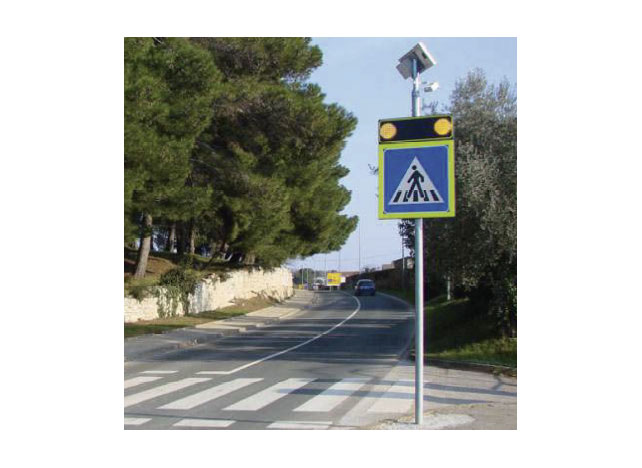 Mogućnost dodatnog označavanja pješačkih prijelaza sa ugradbenim LED markerima koji su povezani sa sustavom te se aktiviraju sinkronizirano sa treptačima na znaku.